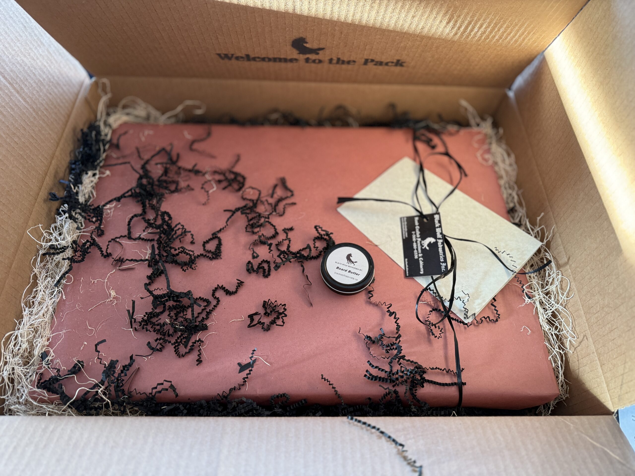 A handcrafted 22″x16″x1.5″ cherry cutting board with edge‑grain construction, juice groove, finger wells, and rubber feet. Pre‑finished and ready to use. Ships in 1–2 business days and includes a care guide plus a 2oz tin of board butter.