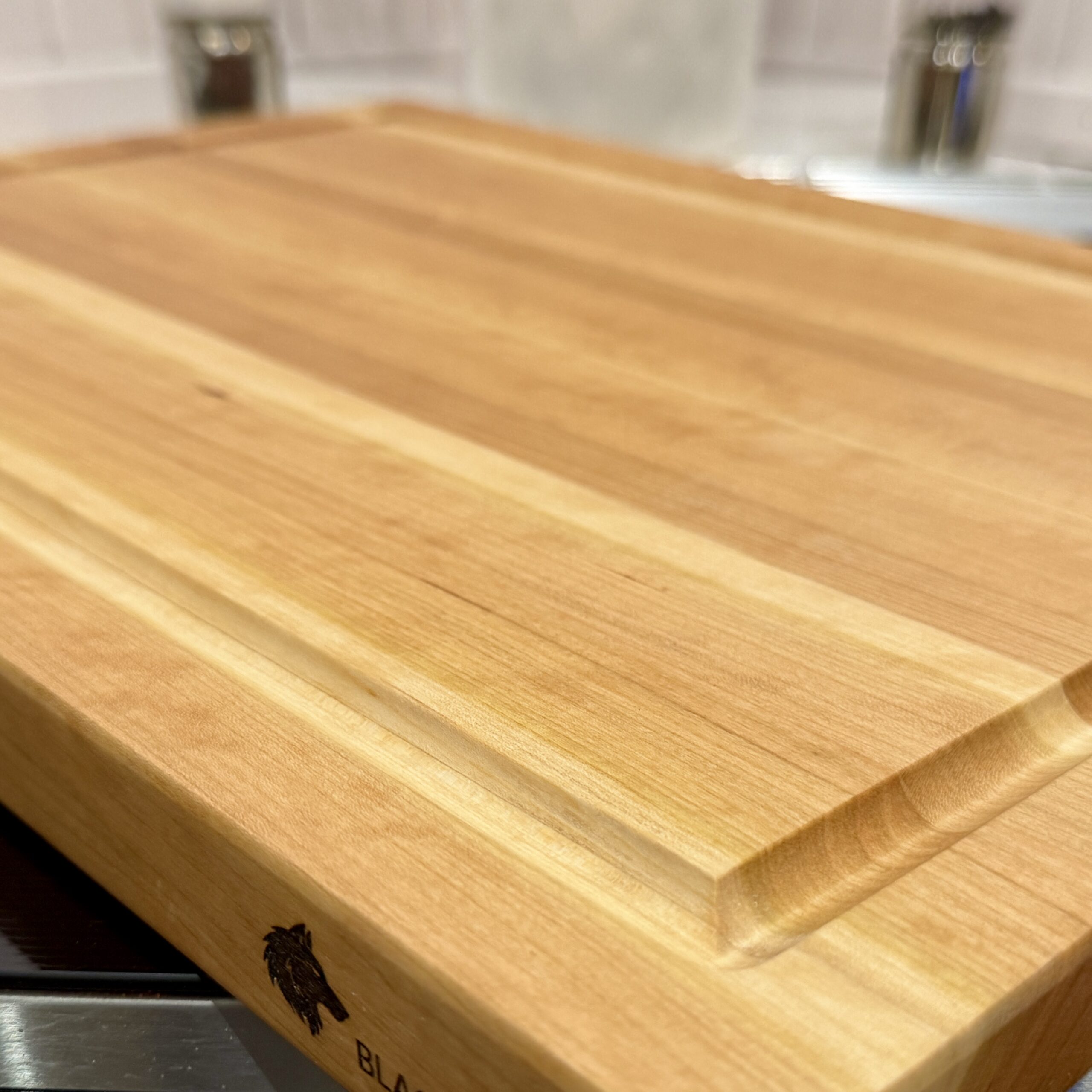 Each cherry cutting board receives a food‑safe oil and wax finish. This finish protects the wood and highlights cherry’s natural color. Over time, the board will deepen into a rich, warm tone that many cooks love. With simple care, the board will stay dependable for years. A quick wipe after use and occasional conditioning will keep the surface looking its best.