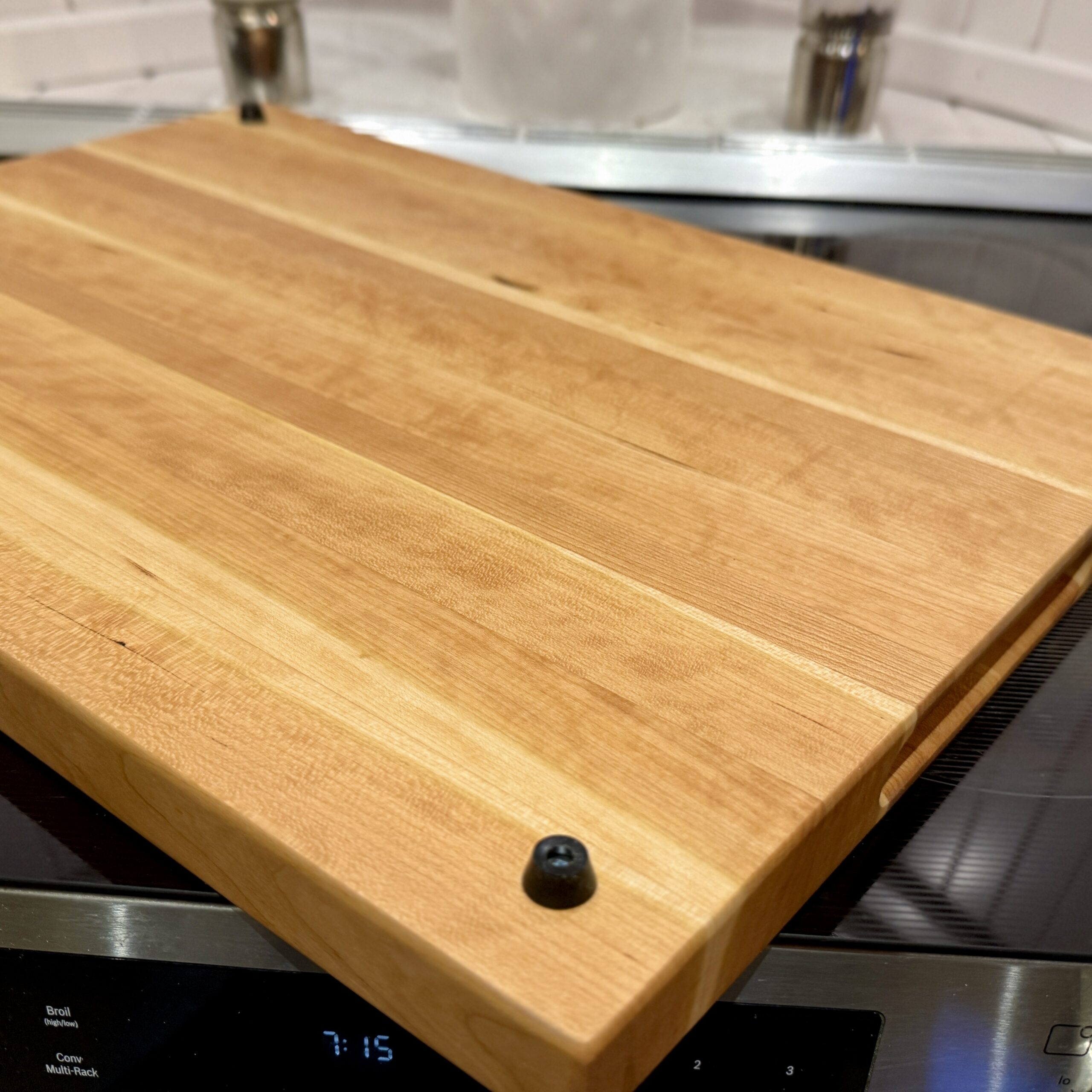 Cherry’s density and closed‑grain structure make it a strong choice for cutting boards used in busy kitchens. It resists moisture and stands up well to repeated use. The edge‑grain construction adds stability and helps the board stay flat over time. As a result, the board maintains a clean, classic look that fits both modern and traditional kitchens.