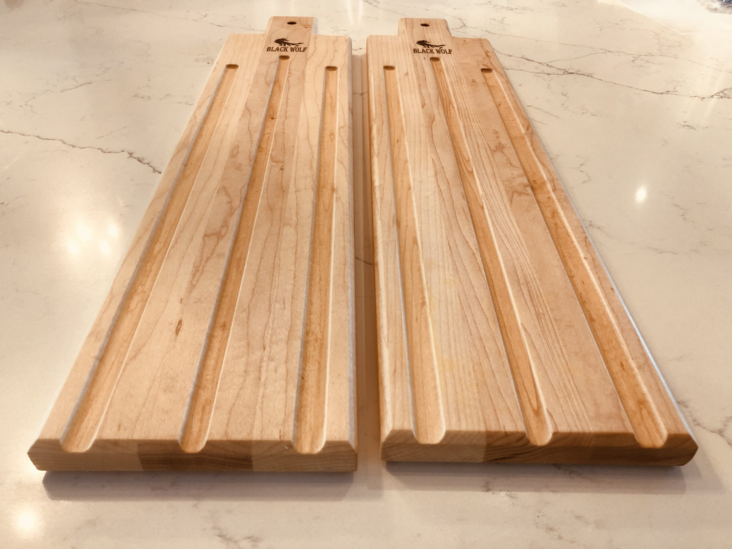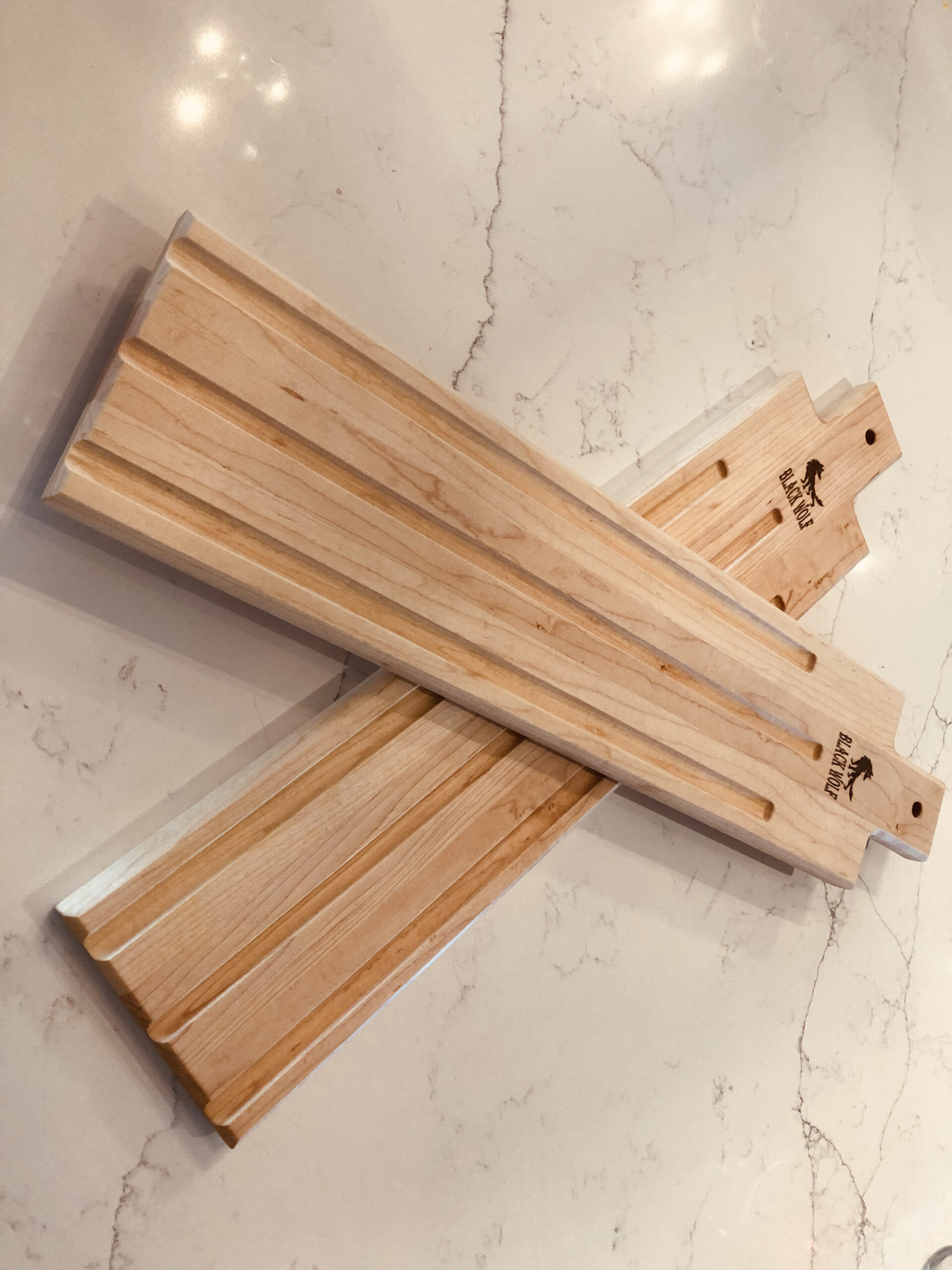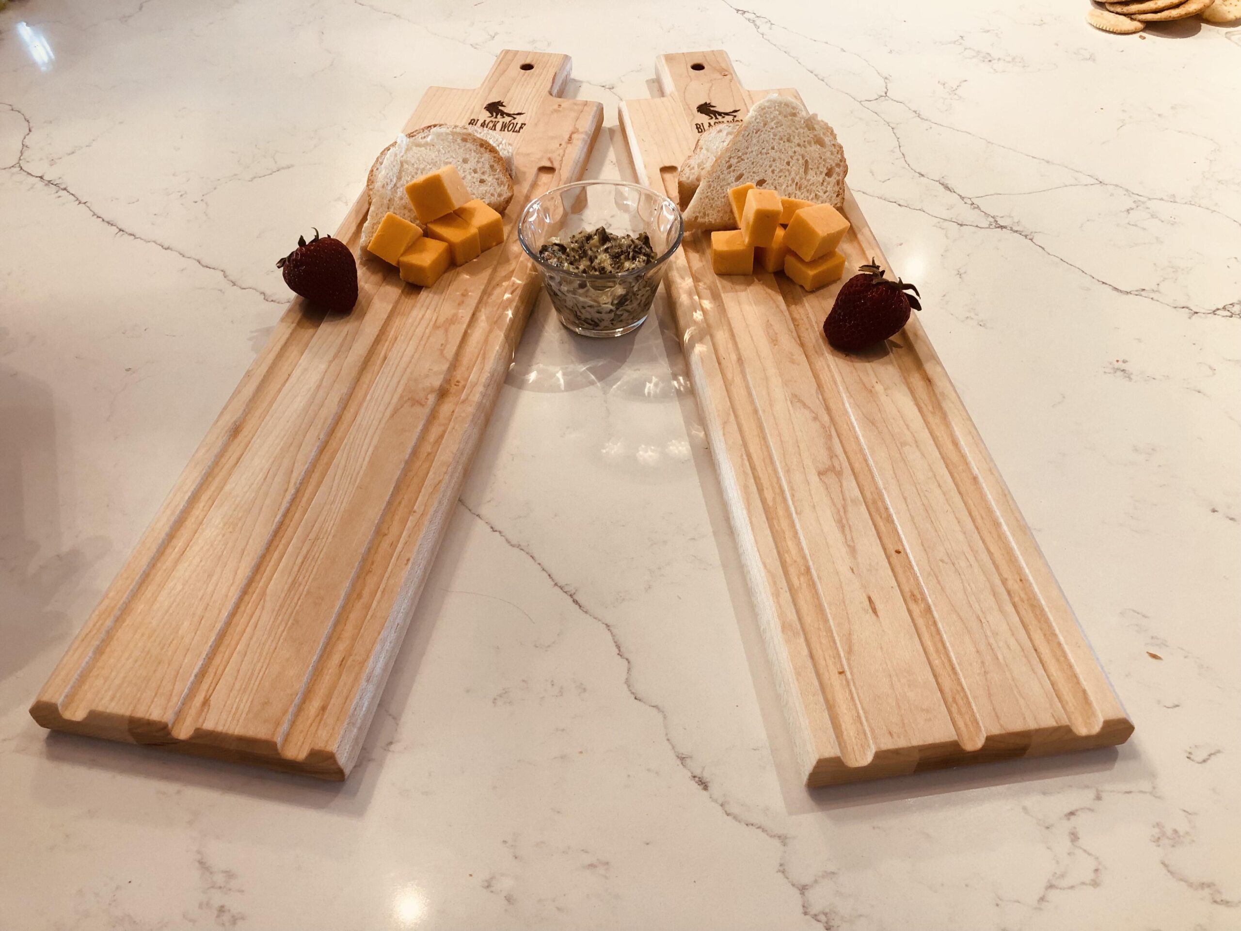 Maple is a popular choice for serving boards because of its bright, neutral tone and long‑lasting durability. It complements a wide range of foods and kitchen styles, from modern to rustic. Over time, the wood develops a soft patina that adds character without affecting performance. Because the boards are lightweight, they’re easy to move around the kitchen or carry to the table during gatherings.