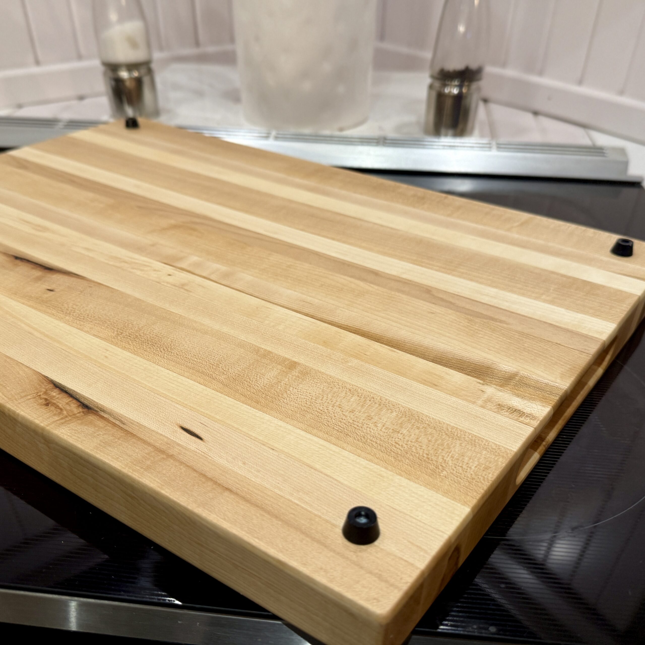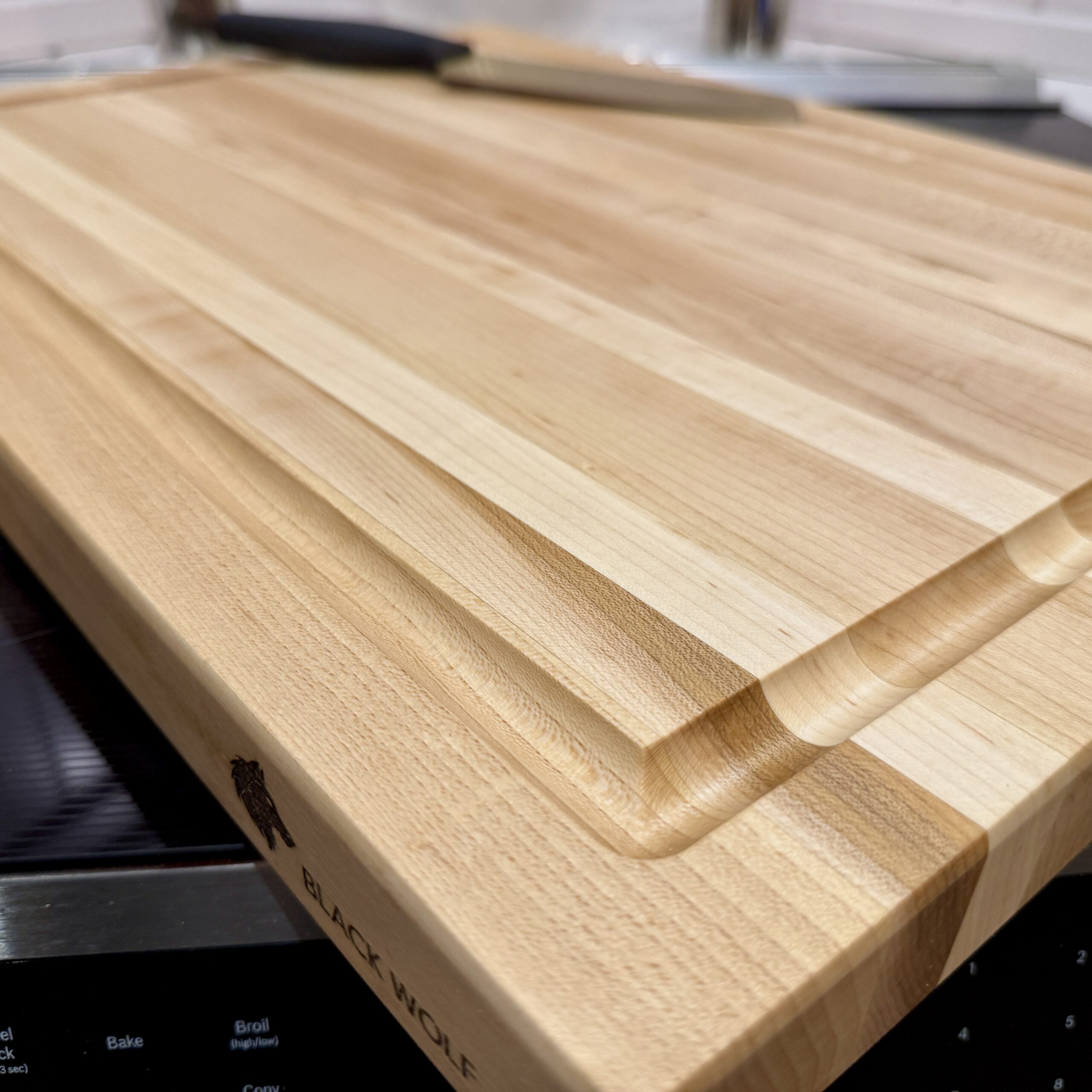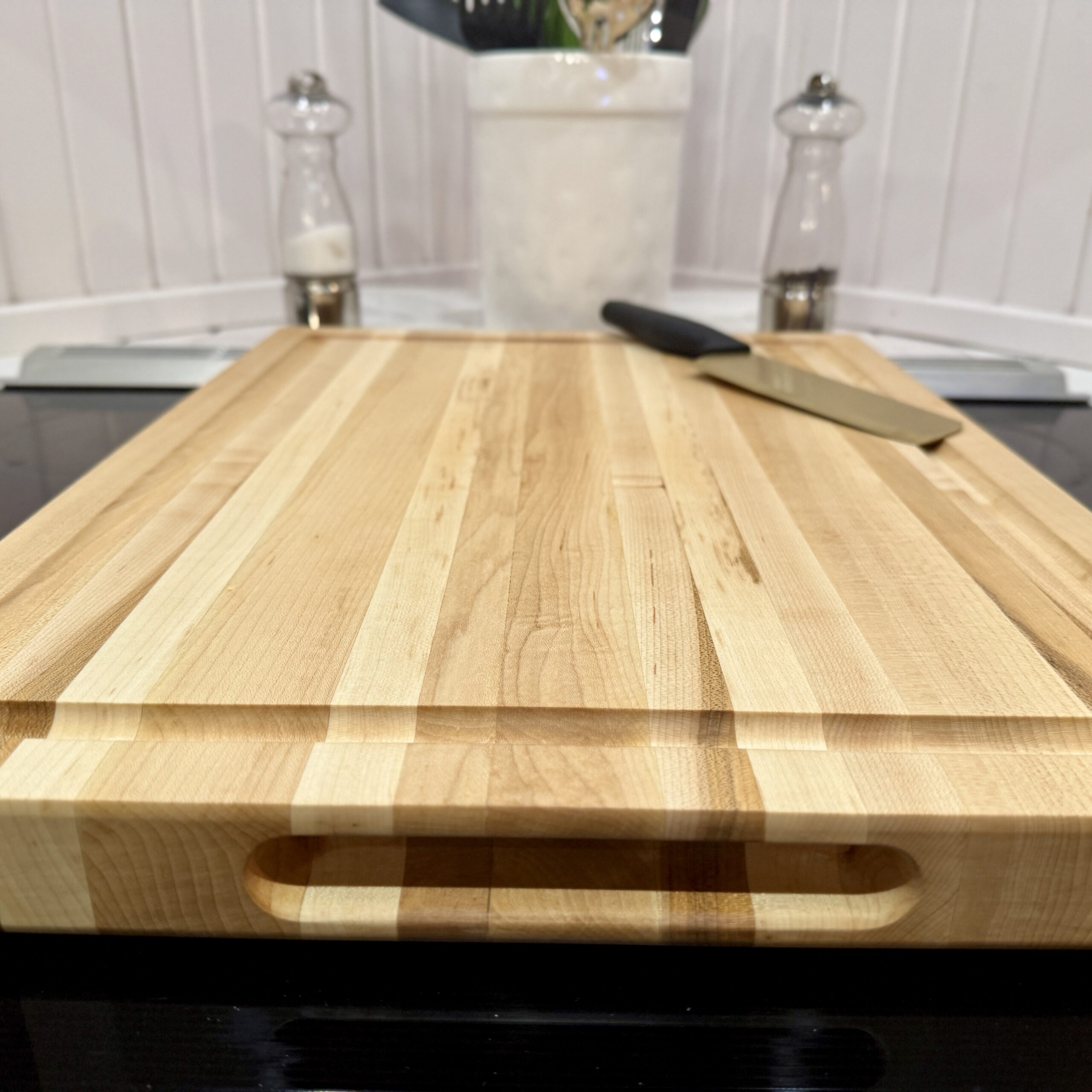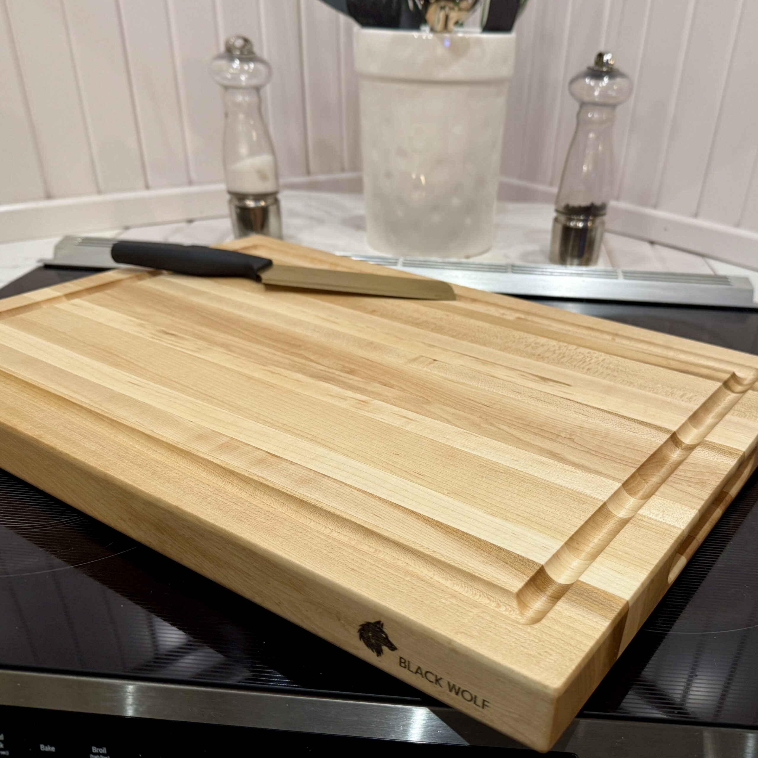 Maple Cutting Board — 22 x 16 x 1.5 in, Finger Wells, Juice Groove, Rubber Feet